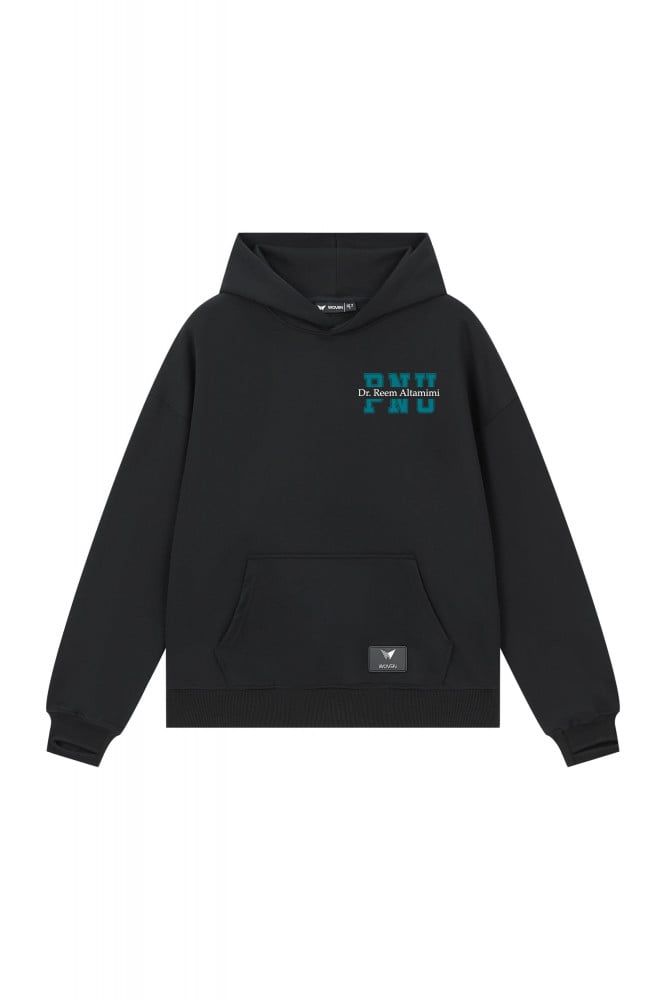 تم تطريزها على نسيج قطني مصنوع من قطن فاخر 100% وكتلة قماشية ثقيلة تمنحك الدفء ويتميز بقصة مريحة وتصميم جذاب يتشكل من رباط بالعنق مع فتحة الاصبع وجيوب الكنغر، يحتوي على تاق البراند باللون العاكس (الهولوقراف) ليمنح التصميم لمسة خاصة.
